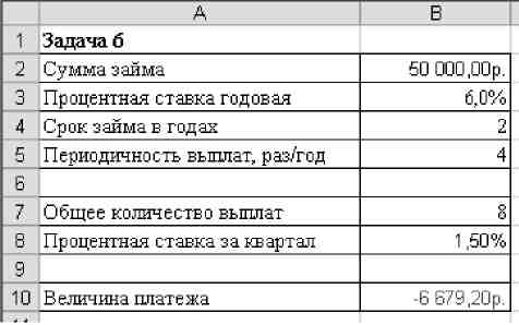 Рассчитывается как процентная ставка за год, деленная на количество выплат в год. Например, кредит выдан под 10% годовых с ежеквартальными выплатами. Процентная ставка за период равна 10/4=2,5% |
