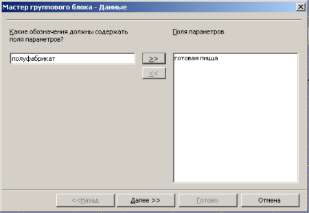 Далее указываем, какие значения будут при выборе одного из переключателей, и как будет называться окно группы.